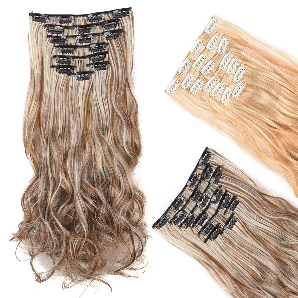 Related Product for Hairpieces Curly Clip In Hair Extensions Synthetic 7pcs Set Ombre Hair Extensions Clip Fake Hair Pieces
