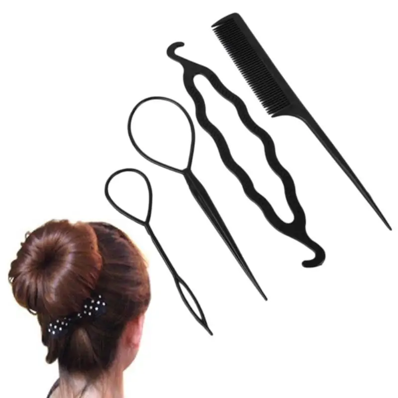 Mayitr 4pcs Ponytail Bun Maker Plastic Hair Braid Styling Clip Tool With Comb Kit Set For Hair Styling Tool