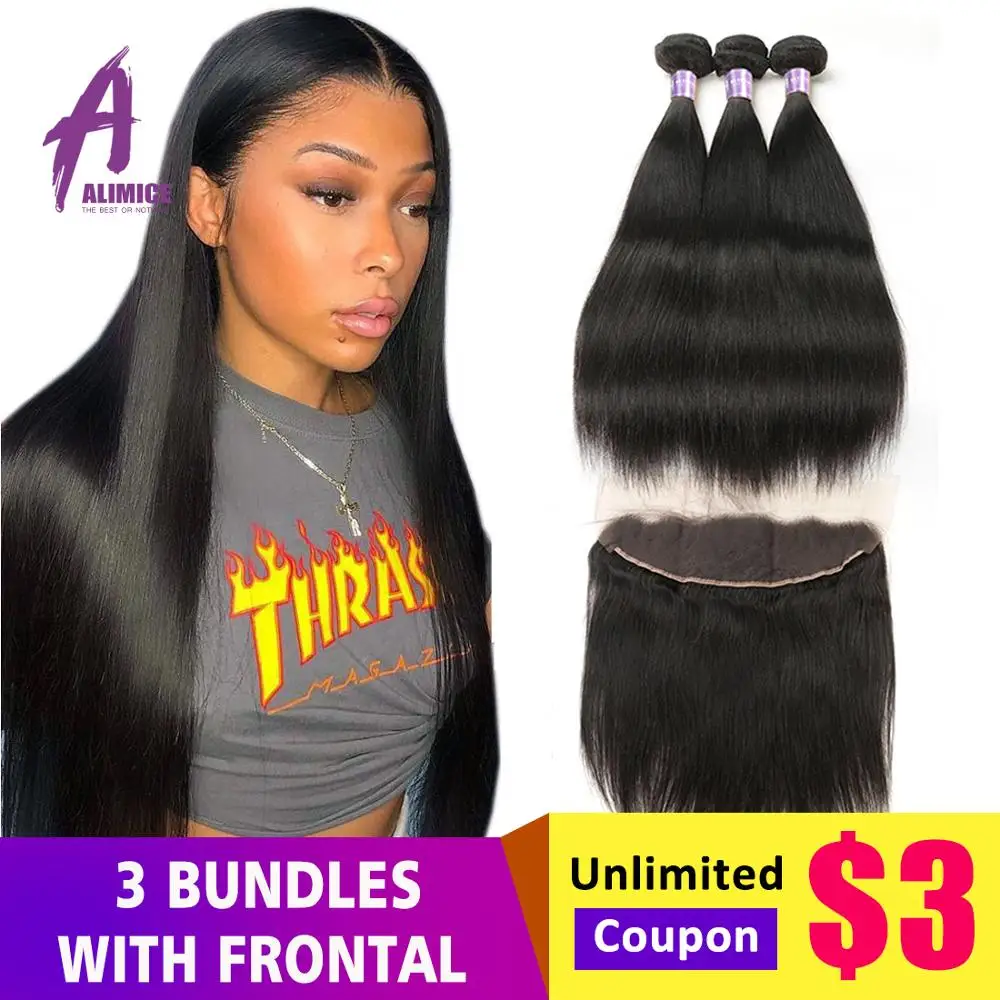 Alimice Indian Straight Hair Bundles With Frontal 13X4 Lace frontal With Bundles NonRemy Indian Hair Weave Human Hair Extensions is one of the best-selling products inside the category Hair Extensions, and has been brought to several of our customers globally, obtaining the best deals in this time.