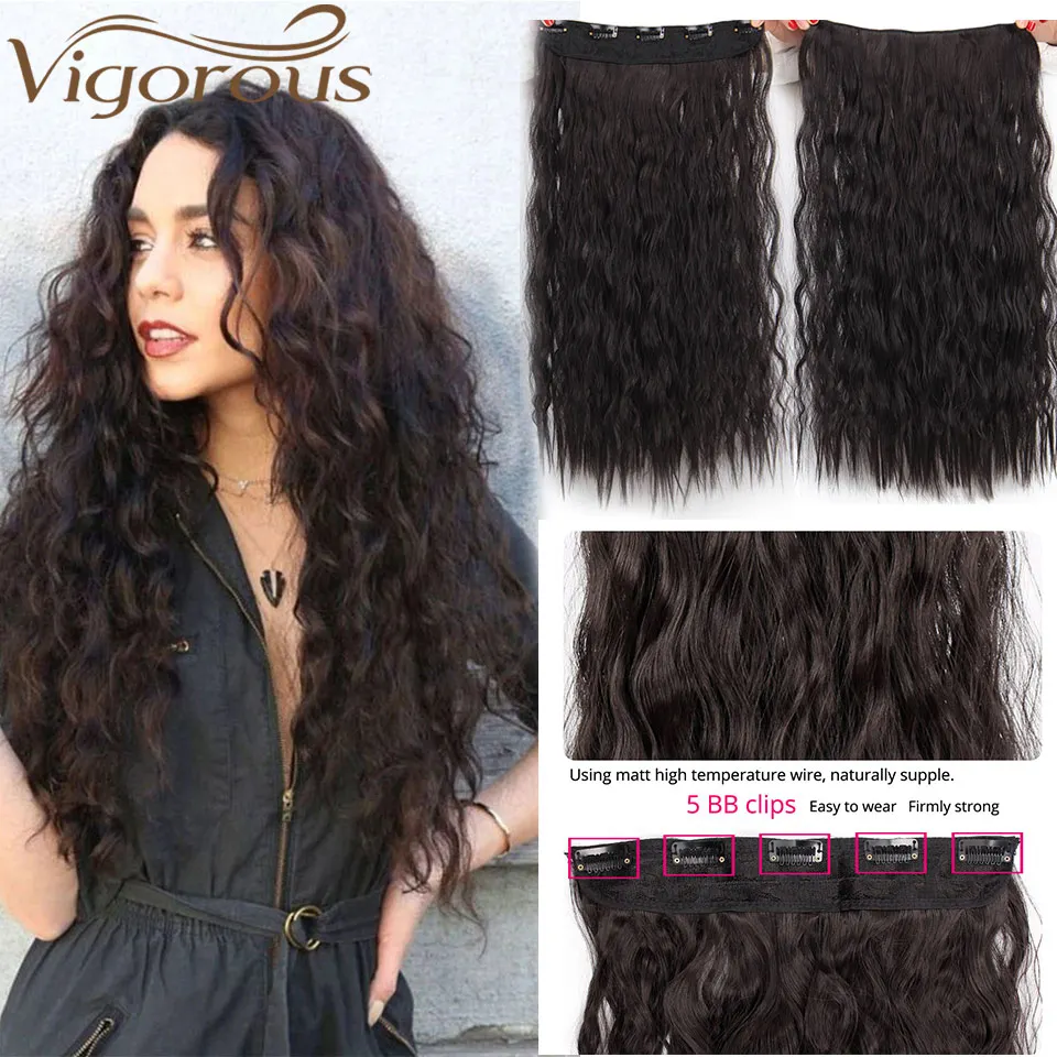 Related Product for Vigorous 22 Inch Water Wave Synthetic Clip-in One Piece Black Synthetic Natural Hair Extension Heat Resistant