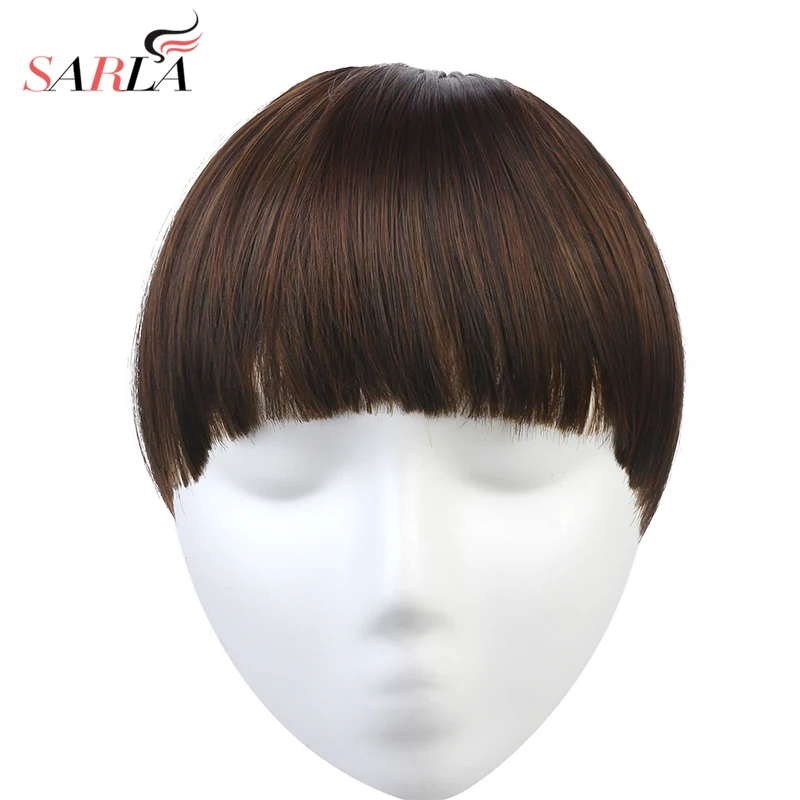 SARLA Synthetic Fake Clip in Bang Hair Extensions Fringe Clip On Blunt Bangs Hairpiece Hair Piece Natural Flase Black Brown B7