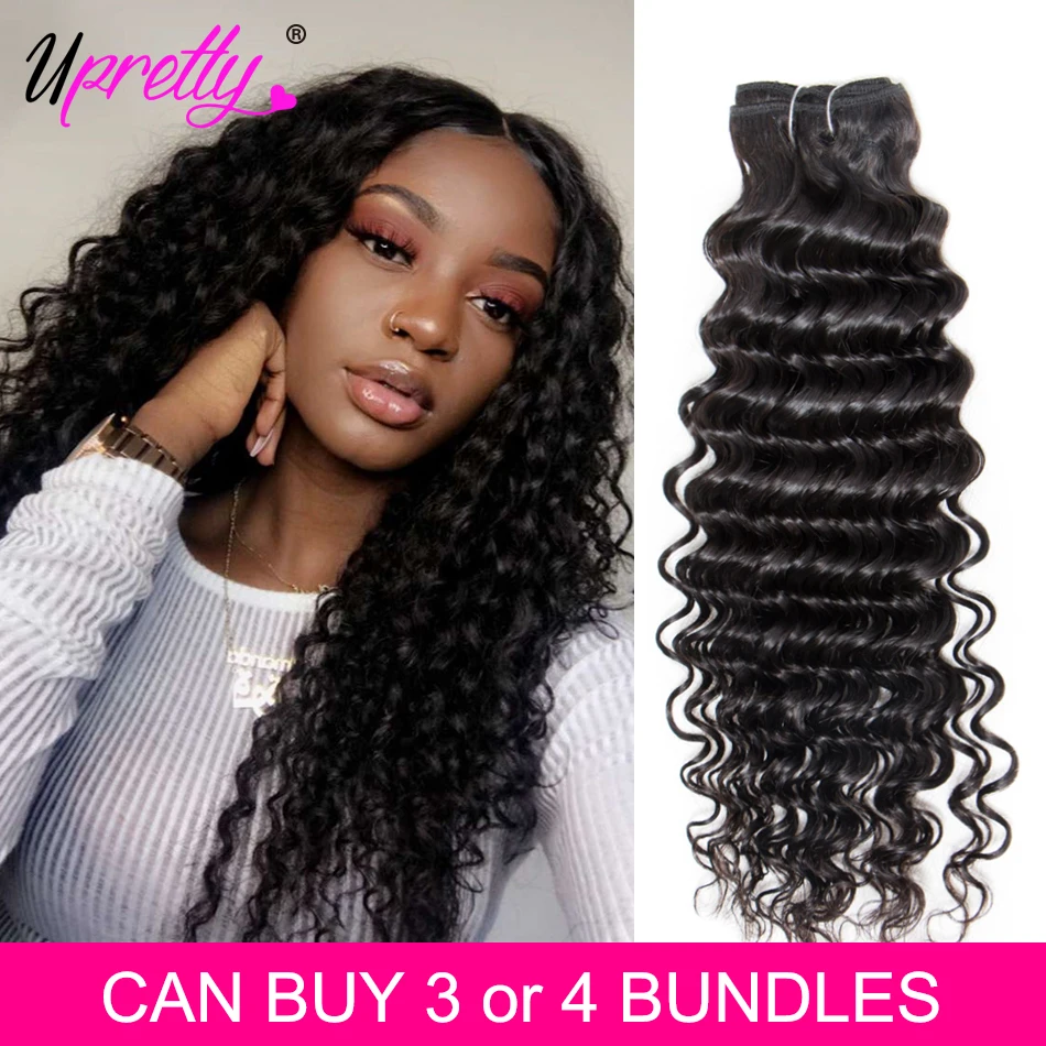 Upretty Brazilian Deep Wave 3 Bundles Human Hair Extensions Deep Curly Brazilian Hair Weave Bundles Can Buy 1/3/4 Bundles