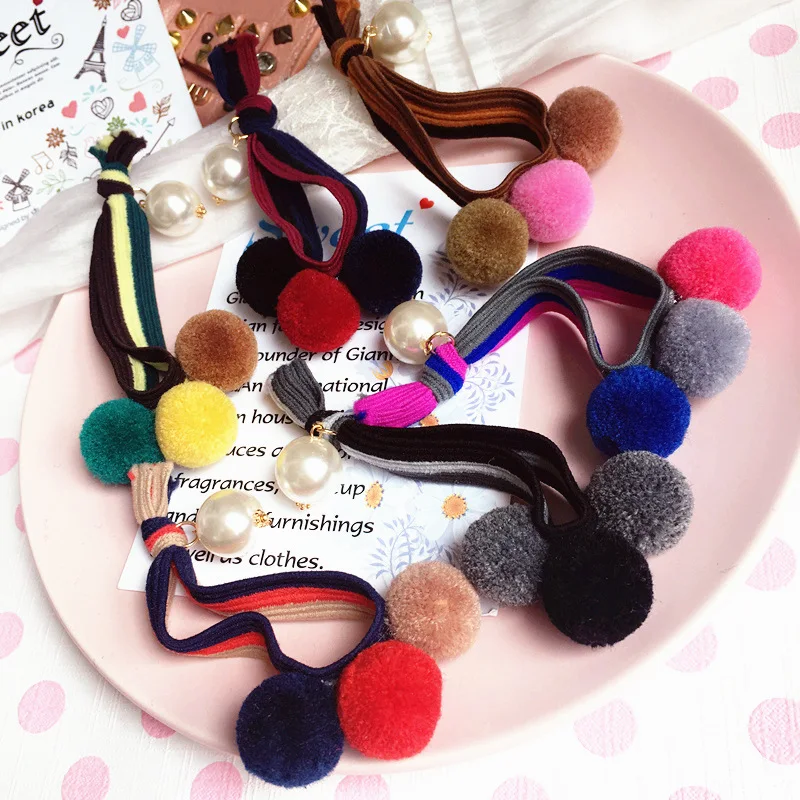 Related Product for Korea Hair Accessories Colorful Ball Pearl Hair Ring Rubber Headband For Women Headwear Haar Accessoires Hair Bows -c