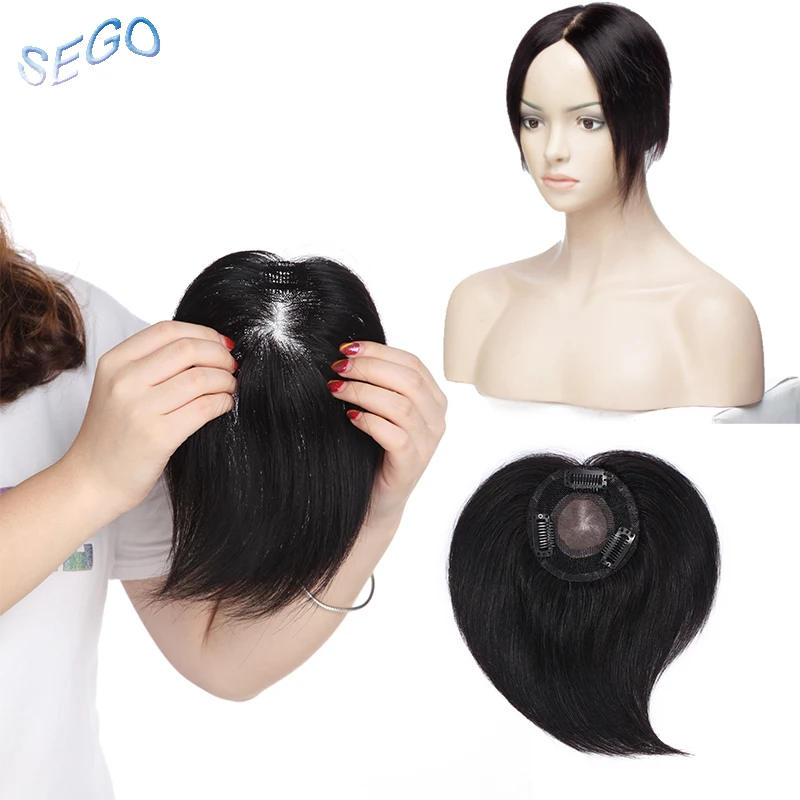 Related Product for SEGO Diameter 9cm Straight Weld Base HairTopperToupee For Women Natural Color Human Hair Pieces Indian Hair Closure 150% Density